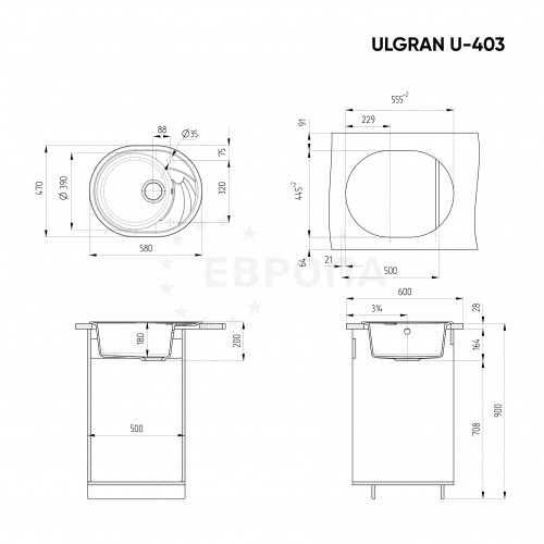 ULGRAN U-403 - односекционная компактная реверсивная кухонная мойка с классической круглой чашей. Данная мойка устанавливается в шкаф шириной от 50 см и является оборачиваемой. Подходит для малогабаритной квартиры. В комплектацию входит сливная арматура с гофротрубой, технический паспорт и гарантийный талон. Заводская гарантия составляет 4 года, а срок службы данной мойки, при соблюдении основных правил ухода за ней, составляет более 10 лет. Мойки ULGRAN изготавливаются на современном автоматизированном оборудовании по инжекционной технологии (литье под давлением) и имеют сравнительно малый вес при высокой прочности, что обеспечивает высокий уровень качества и комфортности. Благодаря сочетанию полиэфирных смол и натуральных мраморных наполнителей полученный композитный материал в 8 раз прочнее натурального мрамора, абсолютно экологичен и безопасен для здоровья человека. Декоративно-защитное покрытие - гелькоут не имеет микропор и не впитывает никакие бытовые загрязнения, устойчиво к ультрафиолету, имеет антибактериальные свойства и надежно защищает от механических повреждений. Мойки ULGRAN устойчивы к термическим воздействиям и кипятку, имеют отличное шумопоглощение при падении струи воды и увеличенное сопротивление внешнему износу (царапинам, ударам). Мойки просты в уходе и без труда чистятся неабразивными средствами, очень долго сохраняя свой цвет и первозданный внешний вид.