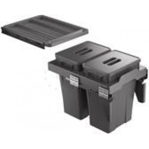 Ведро для мусора на направляющих с доводчиком. С крышкой и мини-выдвижной панелью. W360*D495*H545мм Объем 36л.Порошковое покрытие серого цвета. Для модуля шириной 400мм