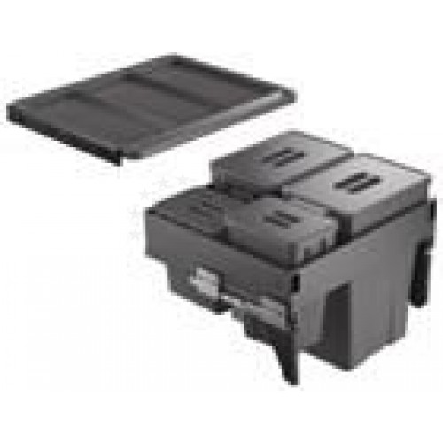 Ведро для мусора на направляющих с доводчиком. С крышкой и мини-выдвижной панелью. W560*D495*H545мм Объем 56л (18+18+10+10).Порошковое покрытие серого цвета. Для модуля шириной 600мм